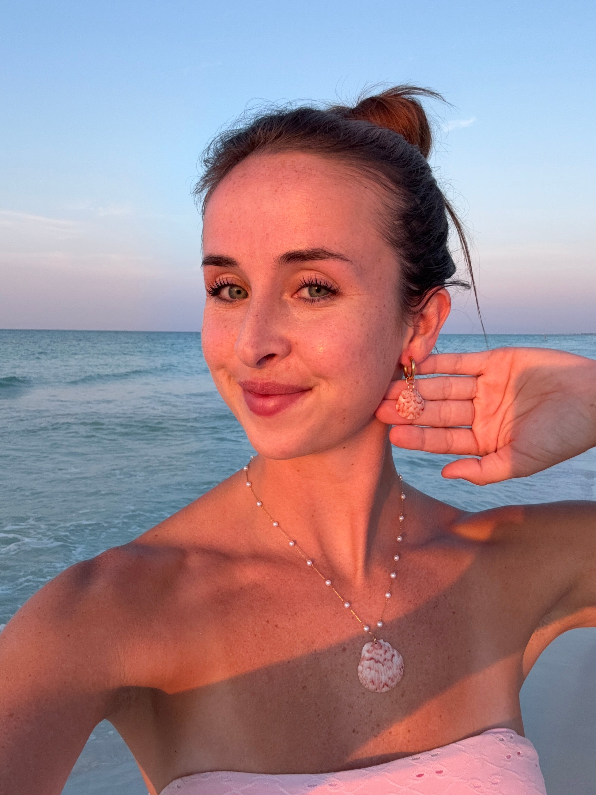 Bring the beach wherever you go with these handmade waterproof seashell earrings. Crafted from real, ethically sourced shells, each pair is unique and designed to withstand water – perfect for beach days, swims, or rainy adventures. Lightweight, hypoallergenic, and effortlessly stylish, they're your go-to coastal accessory.